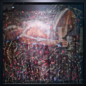 The artwork by each artist in the exhibition The Man’s Phases shines a different light on the idea of life. One discusses fragility of hope while another artist attempts to define the meaning of life and the other artist presents idealistic beauty. Each of the three artist operates within his own rotation circle while gravitating towards one another to achieve the story telling.